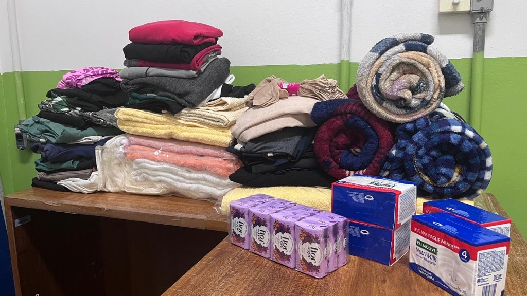 Itens: agasalhos, cobertores e material de limpeza pesada (água sanitária, vassouras, sacos de lixo, etc.).